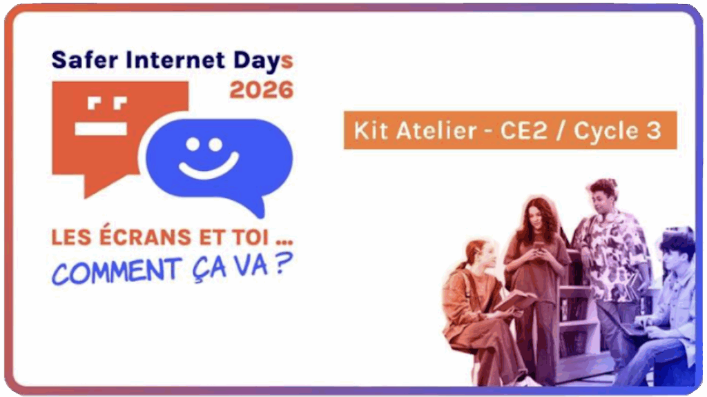 Les kits scolaires contiennent des ressources adaptées aux âges des élèves. Ils précisent le lien avec les programmes scolaires (EMC, EMI) et contiennent des fiches pédagogiques détaillées pour vous guider pour préparer et animer facilement un atelier de sensibilisation au bien-être numérique pour le Safer Internet Day.